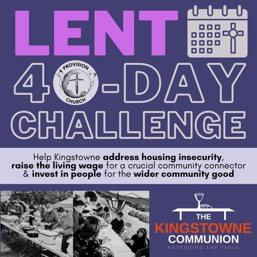 This Lent, we invite you to help the Kingstowne Communion address housing insecurity, raise the living wage for a crucial community connector in our area, and invest in a person (not just a cause) for the wider community good, by helping us sponsor the increase in hours and salary of a crucial community-connector with Provision Church who is currently housing insecure from $600/mon to $1000/mon, beginning in March 2024. Our goal is $4,000, and the Kingstowne Communion will MATCH any donation up to $2,000. Learn more and donate now.